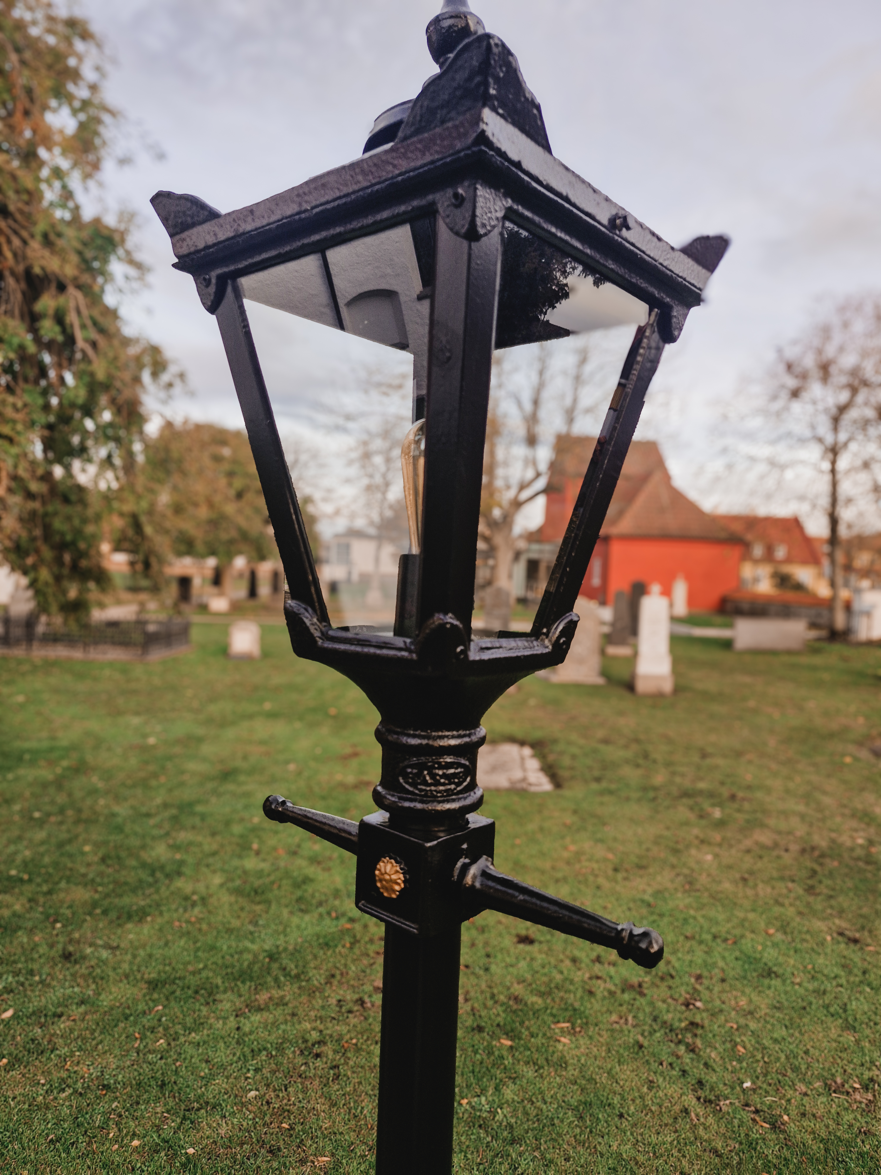 Här ser ni våra eleganta gjutjärnslyktstoplar med livstidsgaranti!