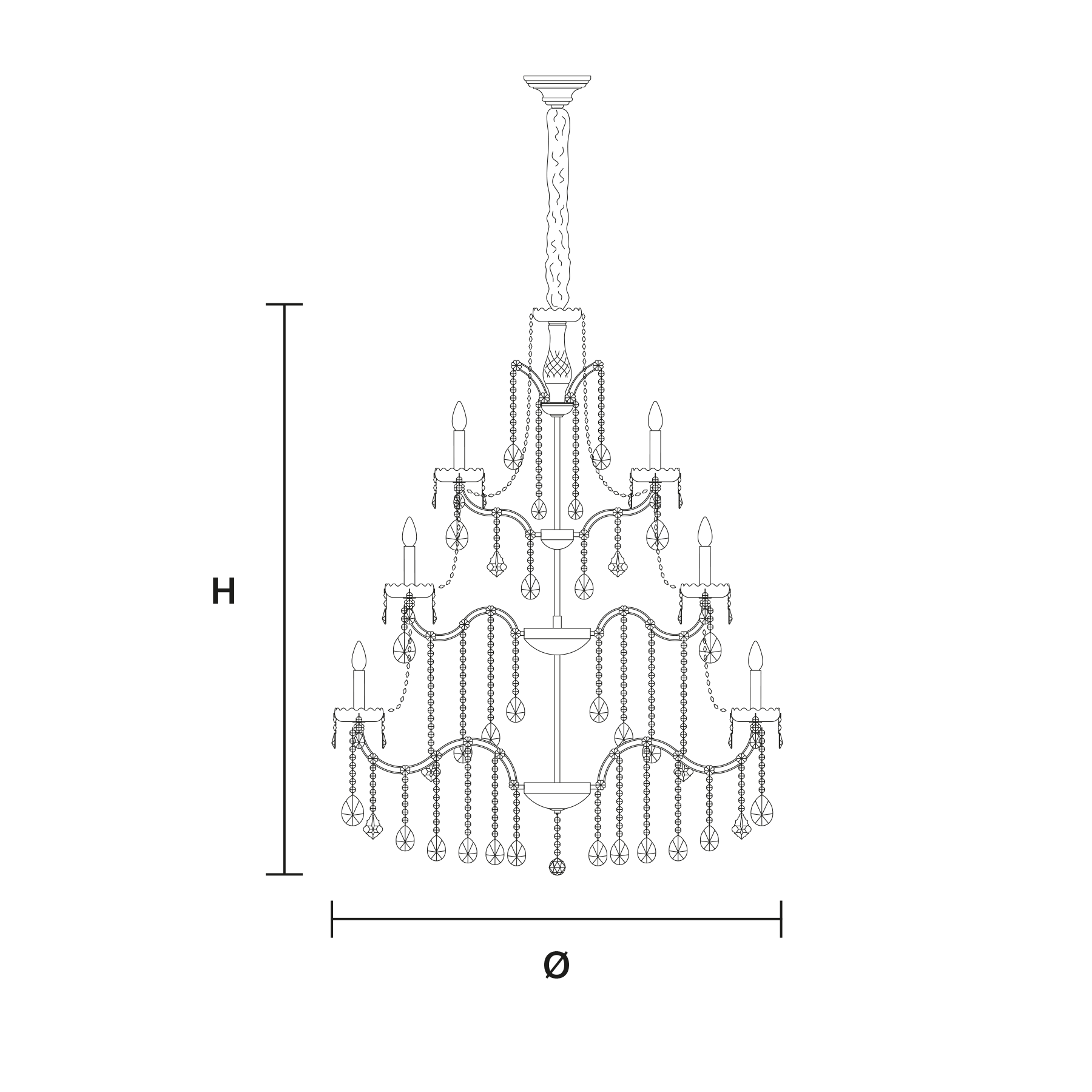 The Aqaba chandelier is part of a larger range, available in various sizes and configurations, making it perfect for both small, intimate spaces and large, grand interiors.