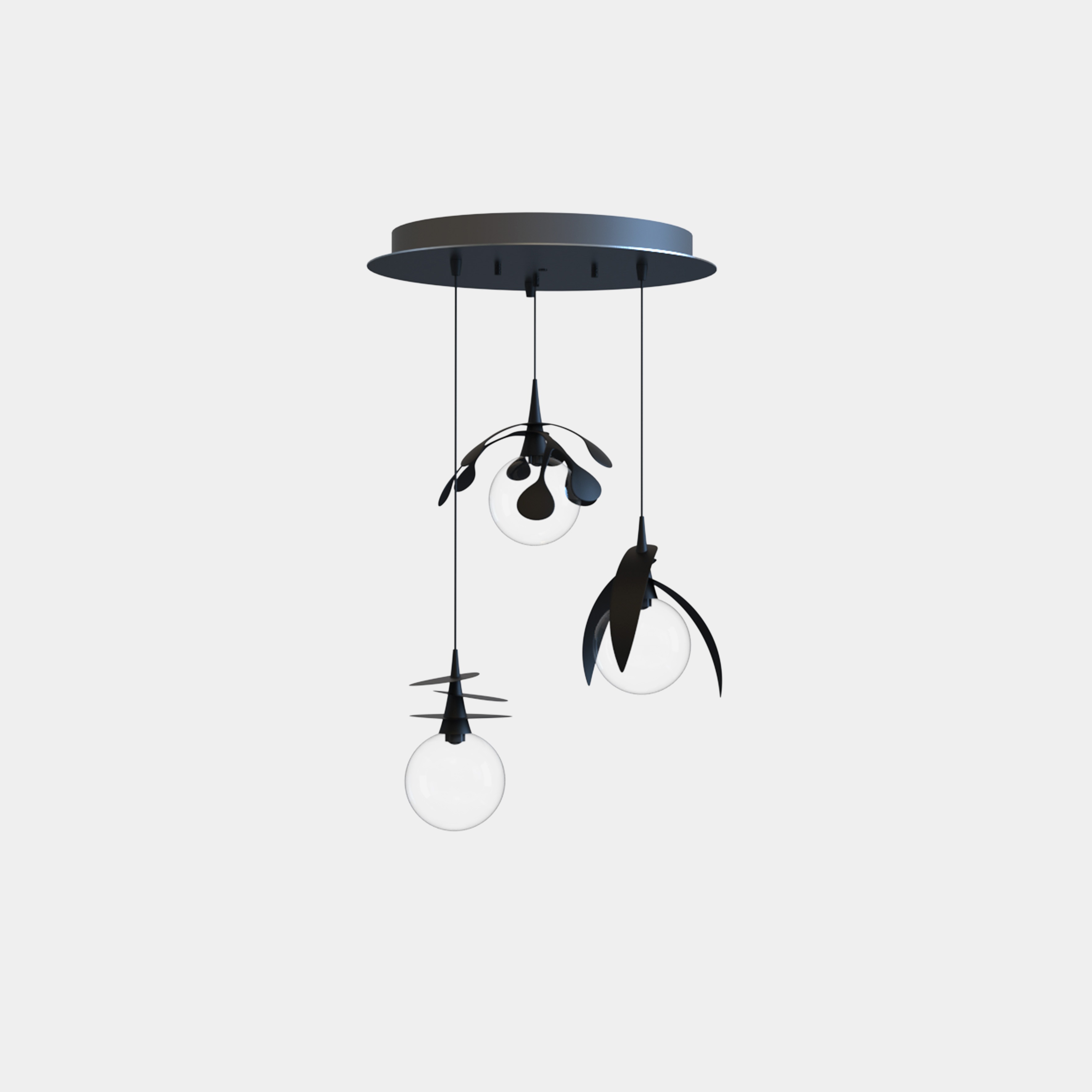 Vegetabiliska lampor från Cangini & Tucci. Vegetal är en kollektion av blåst glas designad av Marcantonio, inspirerad av naturens skönhet och symbolik. Kollektionen kombinerar blåst glas och metall och innehåller fyra unika pendellampor – Palma, Ficus, Pilea och Calathea – som var och en återspeglar essensen och innebörden av växten den representerar.